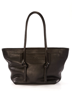 Basket Leather Tote Bag - Black