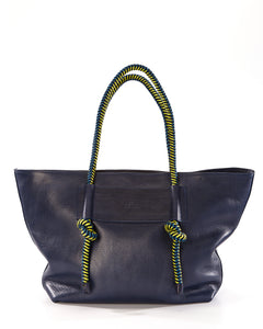 Basket Leather Tote Bag - Blue Pacifico