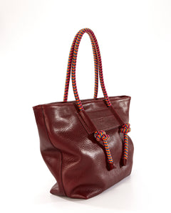 Basket Leather Tote Bag - Burgundy Hypnotic
