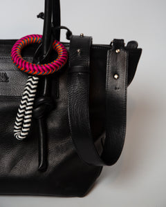 Adjustable straps with knot in leather to wear it as a shoulder bag and detachable crossbody strap.