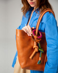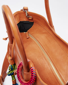 Basket Charms Leather Tote Bag - Tan