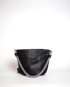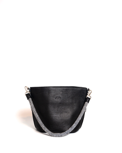 Detachable short handbraided handle in the Bataraza Mix (White/Black) to wear it on the shoulder or hand.