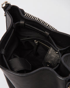 Bucket bag in vegetable tanned cow leather, dyed with anilines.
