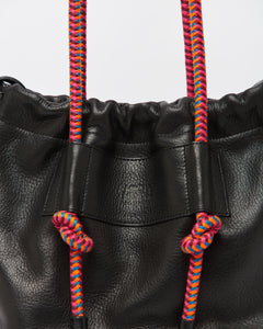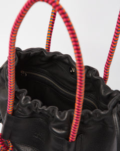 Adjustable short straps with knot in leather + a pair of handbraided handles to interchange, in the Hypnotic Mix (Pink/Orange)