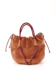 Adjustable short straps with knot in leather + a pair of handbraided handles to interchange, in the Hypnotic Mix (Pink/Orange)