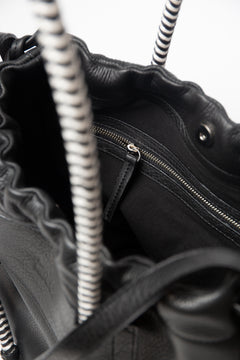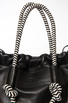 Adjustable short handles with knot in leather + a pair of handbraided straps to interchange, in the Bataraza Mix (Black/White)