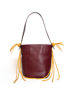 Yarara Leather Shoulder Bag - Burgundy & Yellow